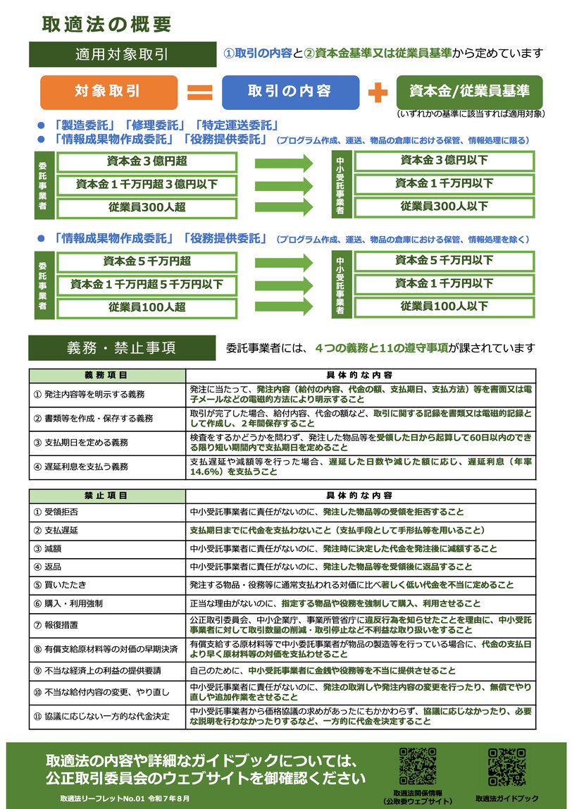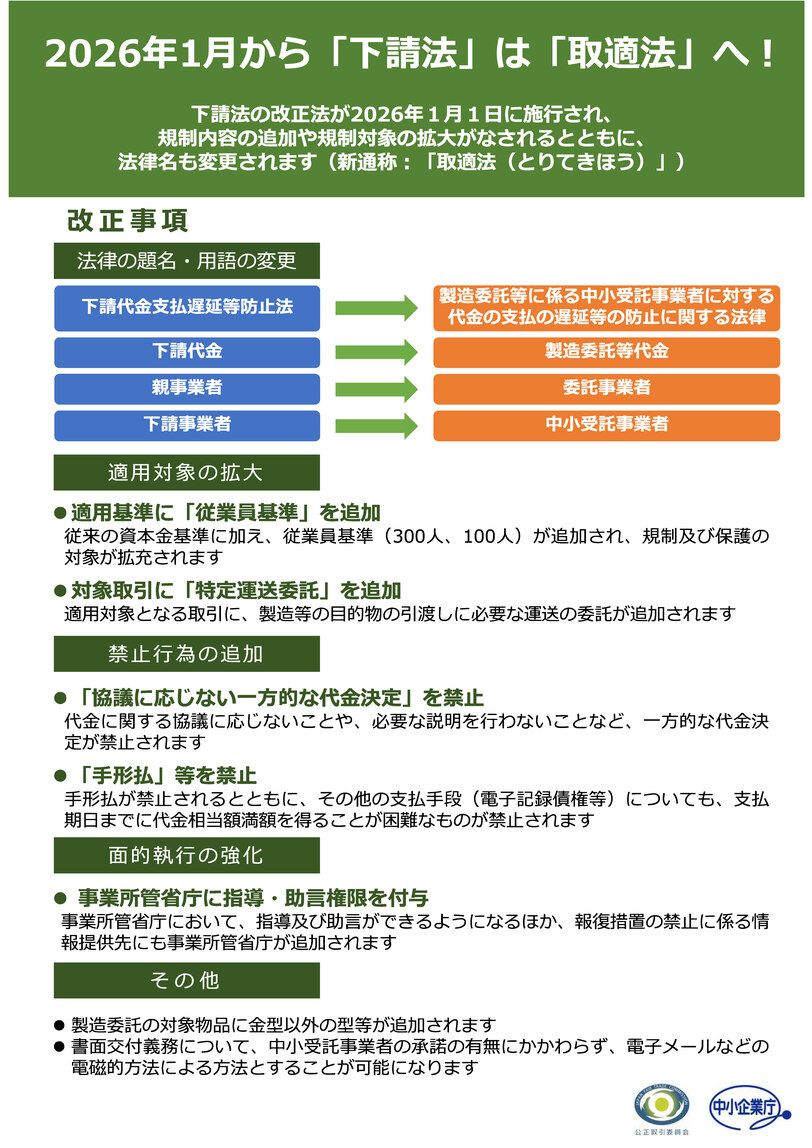 2026年1月1日より取適法が施行されています。